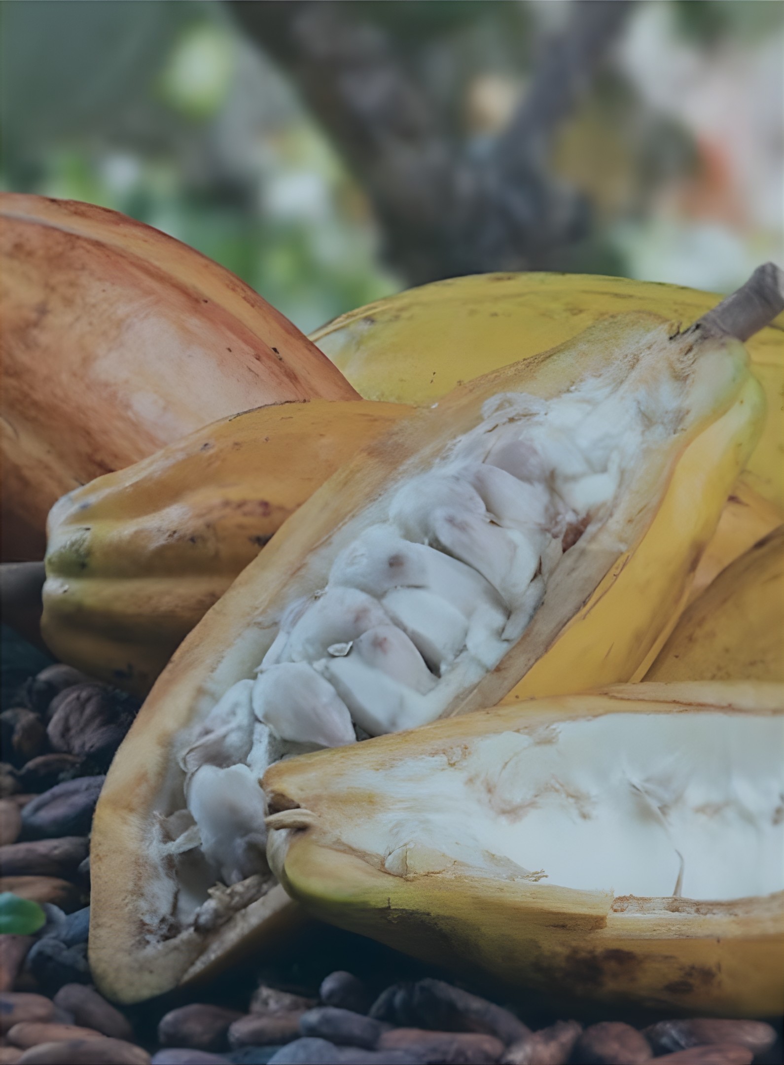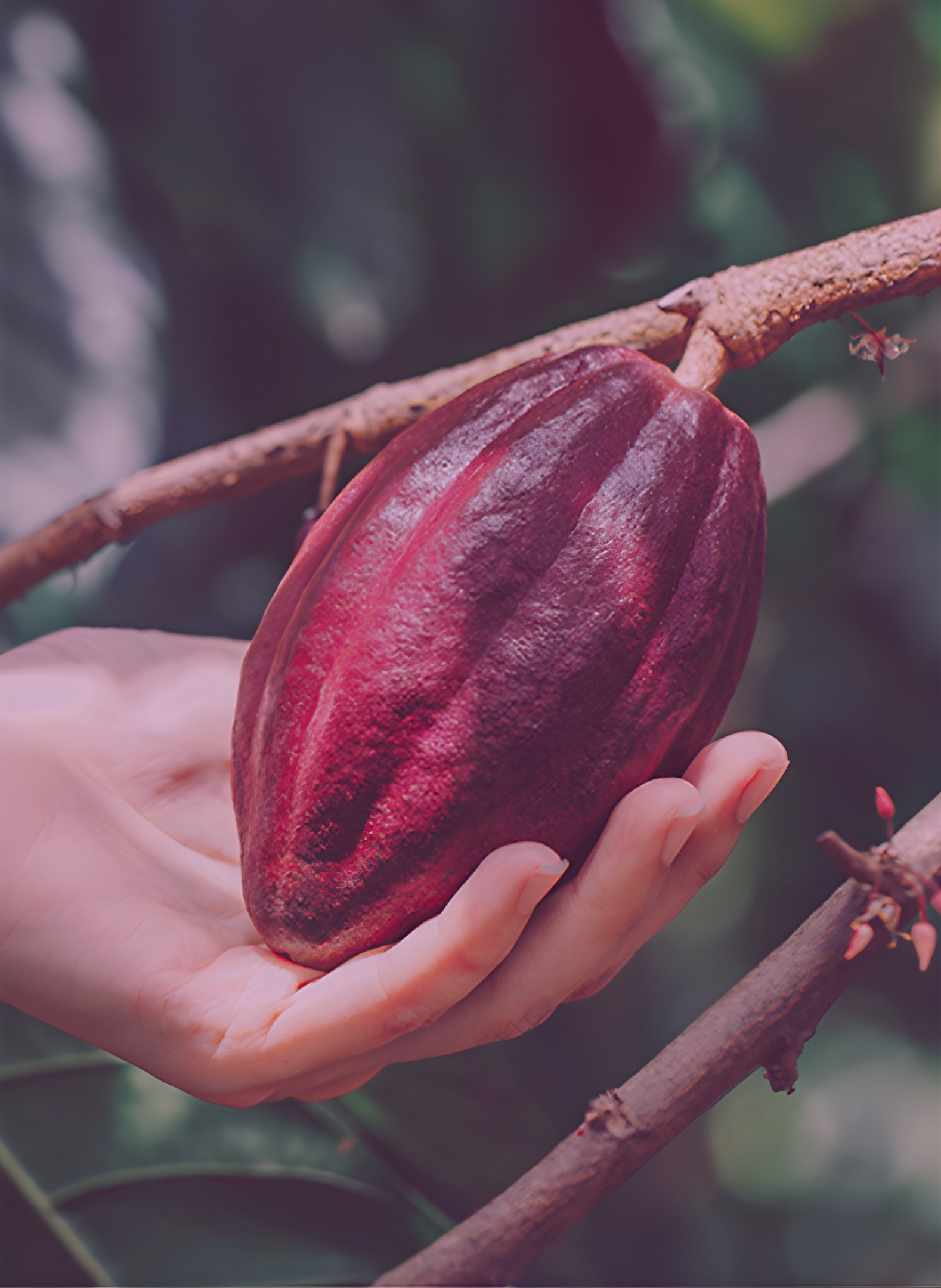 Elaborado para capturar la esencia completa del fruto del cacao — su aroma, su acidez brillante, su dulzor natural, su textura y su color. A través de innovación en foodtech, aislamos y preservamos el perfil vivo del sabor del cacao, no como chocolate, sino como una bebida refrescante y frutal que honra la verdadera naturaleza de la mazorca.